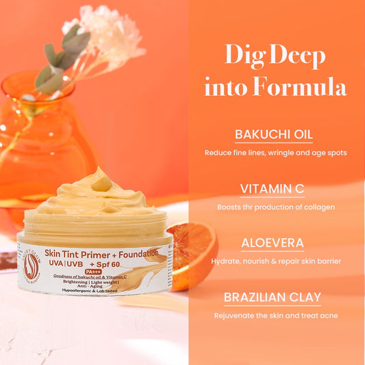 Skin Tint Primer + Blue Light Filter with SPF 60 PA+++ & Sunscreen Lightweight Tinted